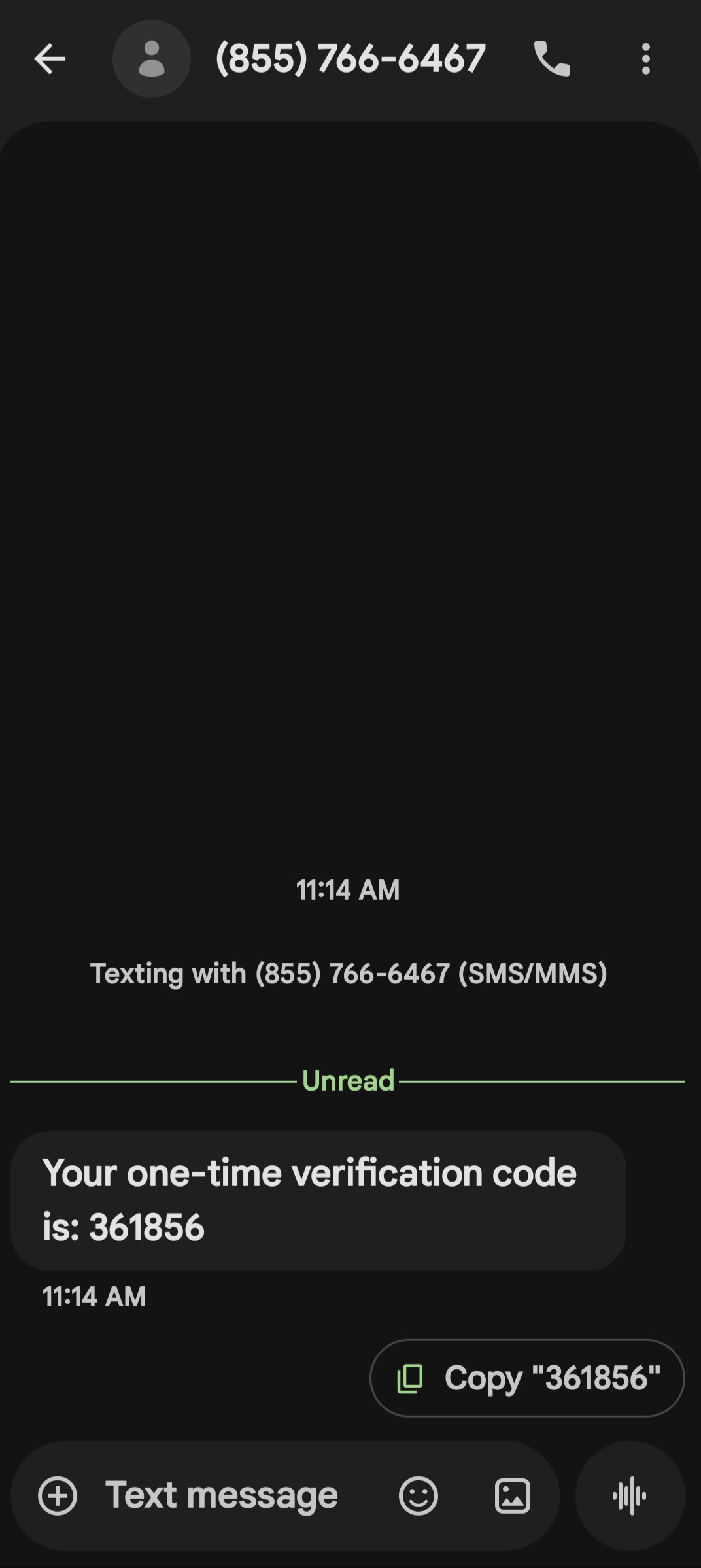 Step 4 You will then receive another SMS message with the verification code. Return to the app and enter this code in the designated field.