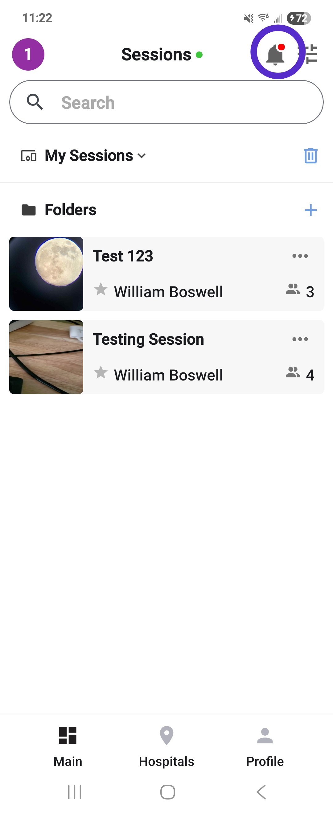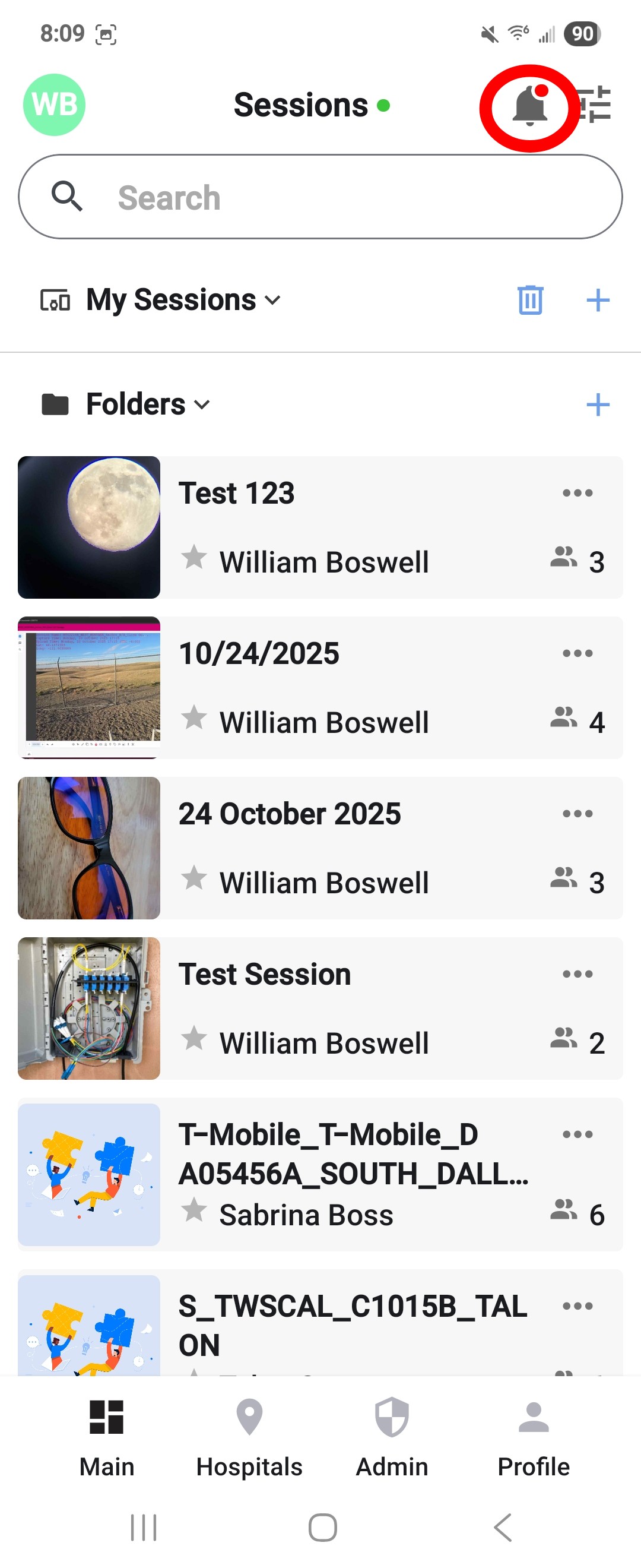 Step 4 Once you have found your tenant, your Sessions page will load, with a list of the sessions you have worked in previously. Click the Notifications icon in the top right.
