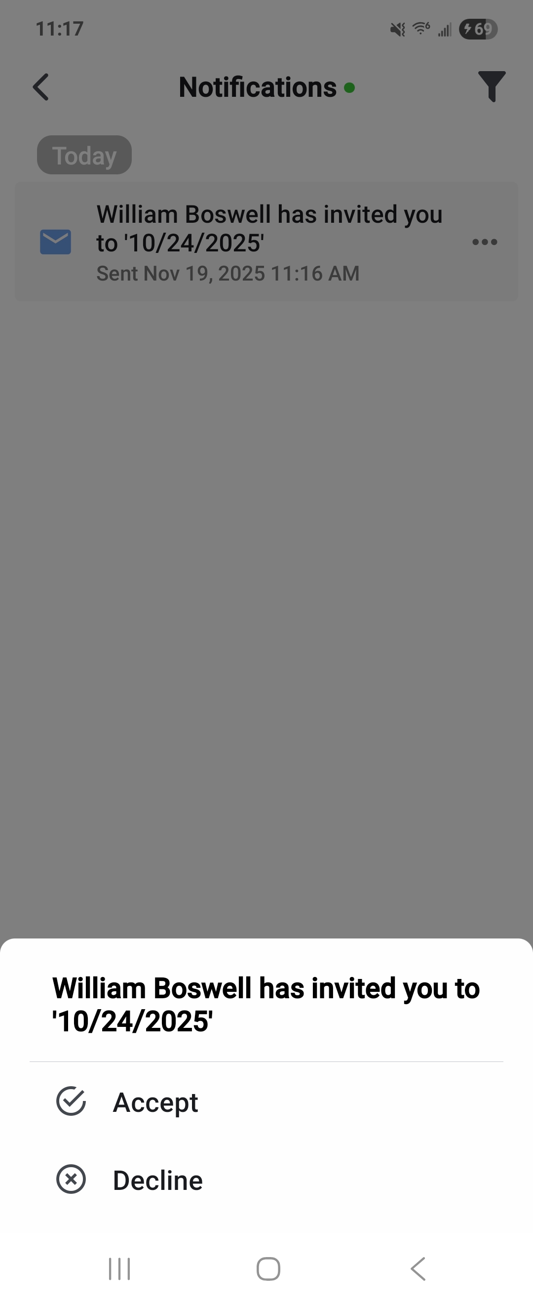Step 6  Any new sessions will appear here. Click the three dots to the right of each session to Accept or Decline the invite.