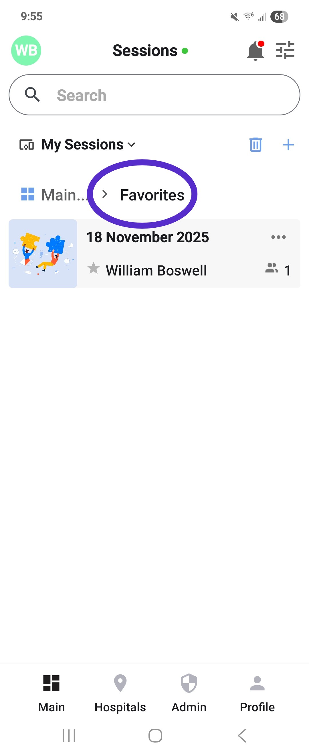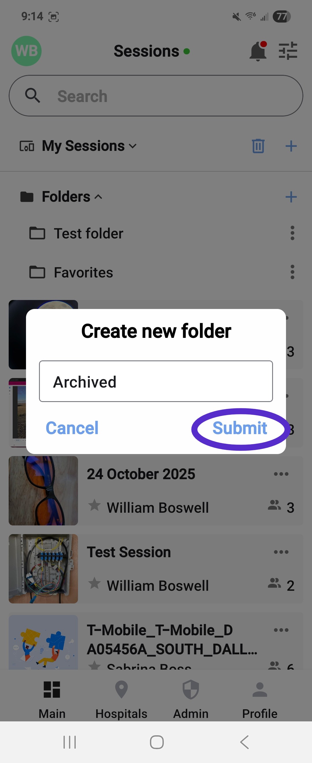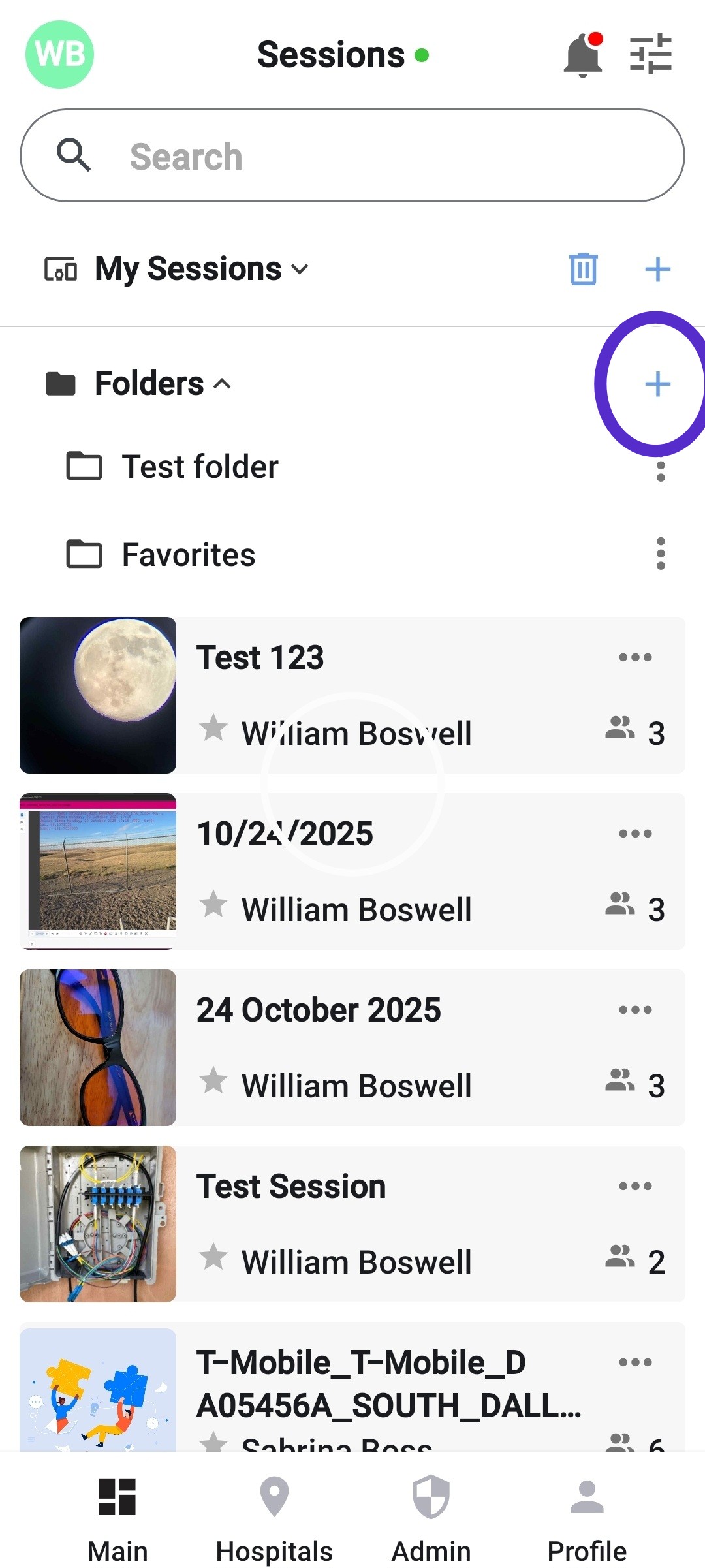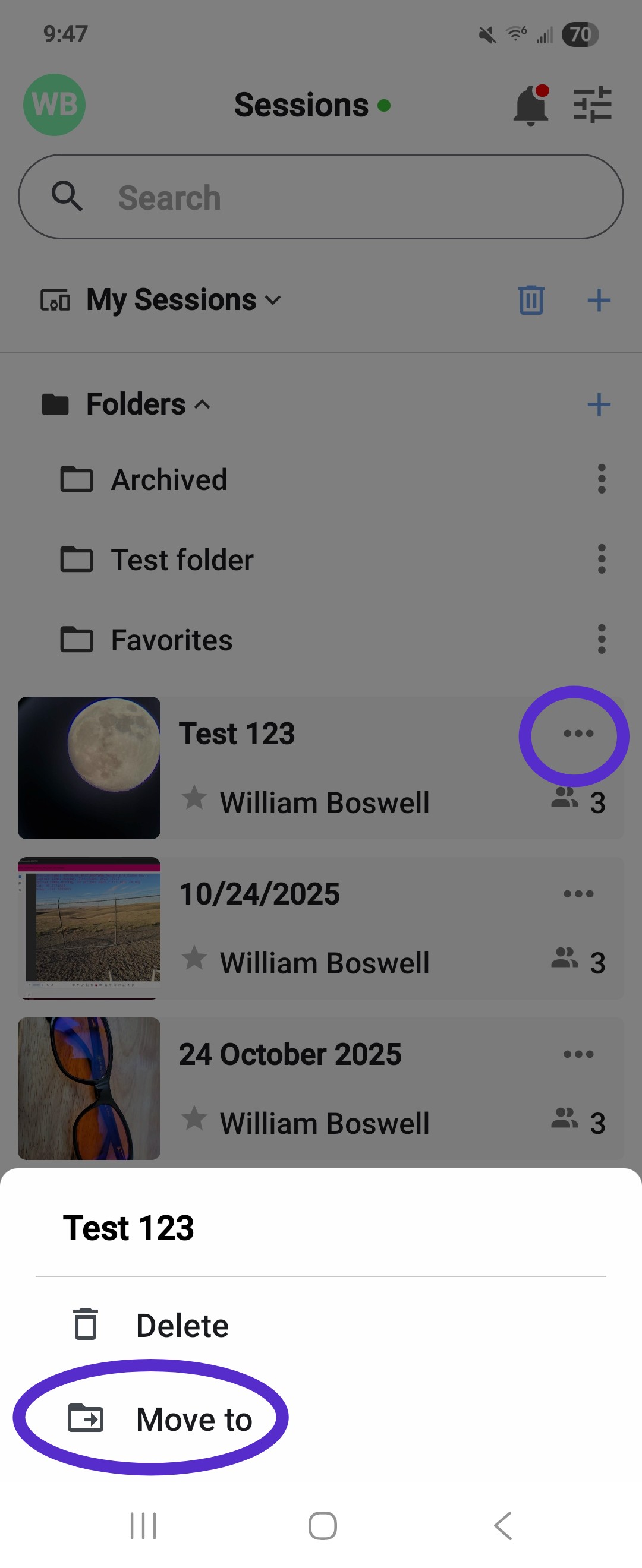 - Open the session page on the mobile app. Session folders will remain at the top of this page